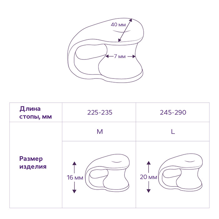 - кольцо на первый палец стопы обеспечивает оптимальное положение перегородки и препятствует соскальзыванию изделия при ходьбе